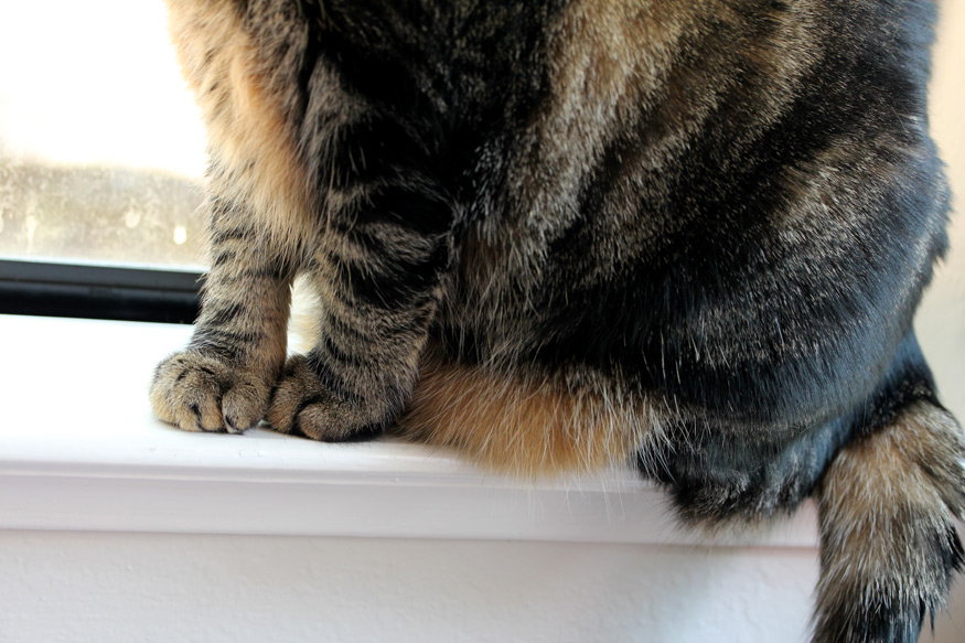 It worked. Tabs was totally enthralled, forgot that the camera was there, and Mario got the shot. The rest is kitty modeling history.